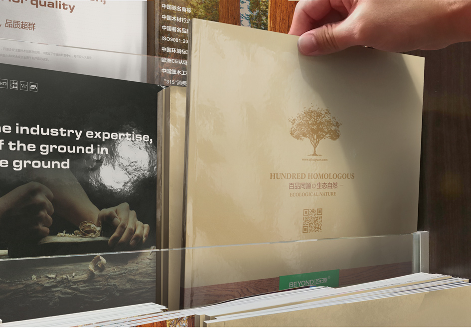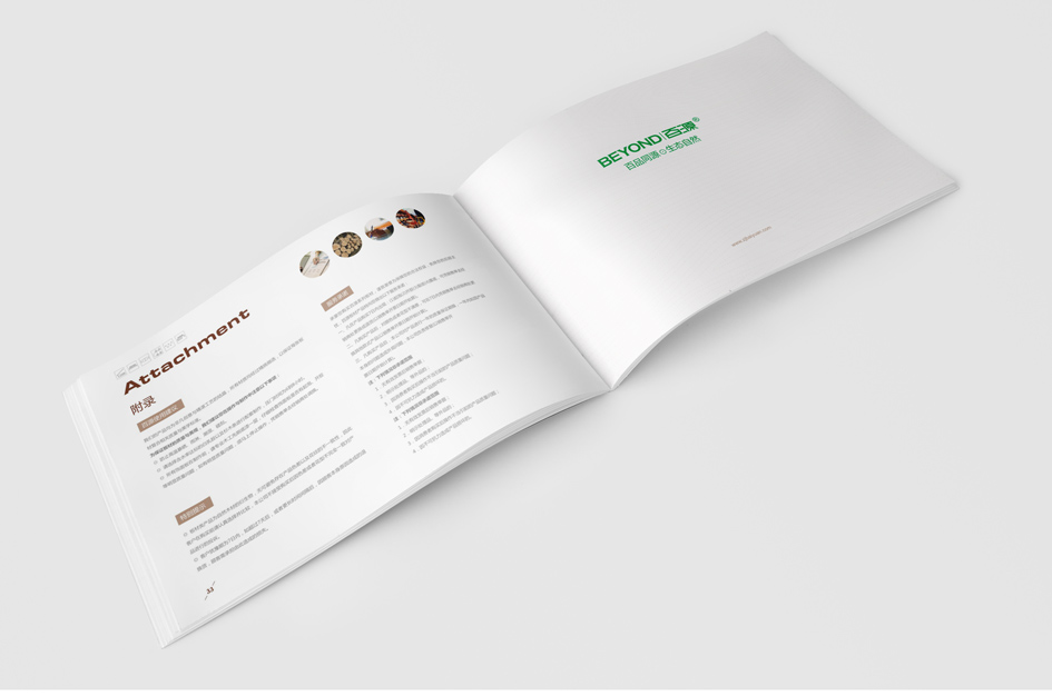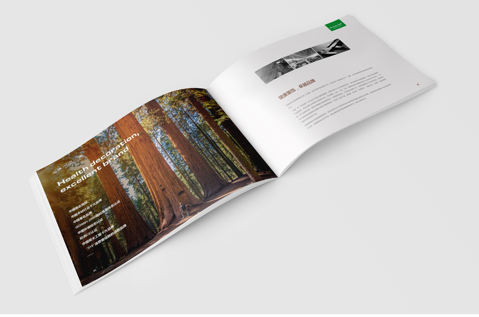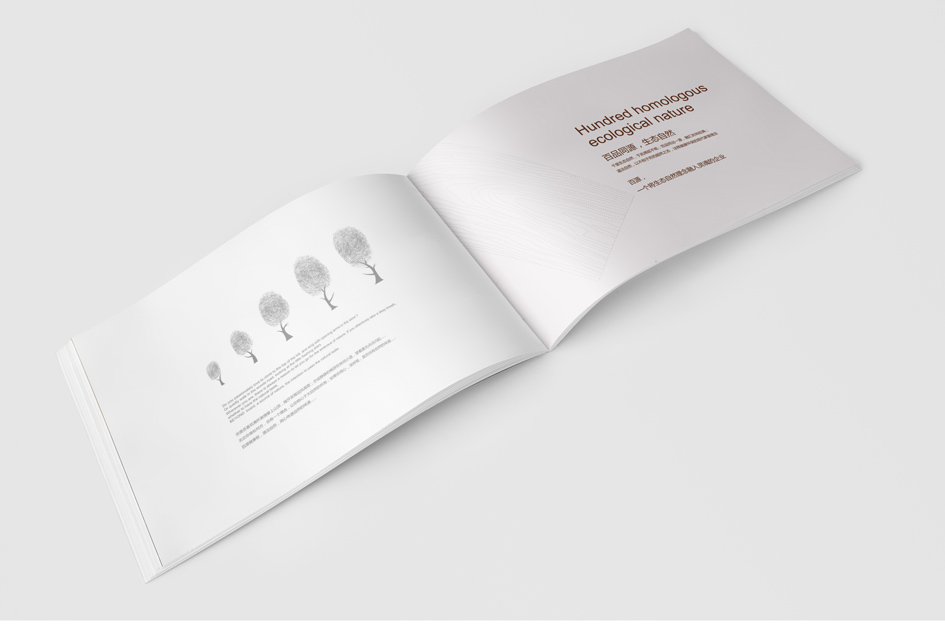 百品同源,生態(tài)自然 千里生態(tài)自然,于此綿廷不絕;百品同出一源,融匯時尚經(jīng)典 道法自然,以不拘于形的超然之態(tài),詮釋健康環(huán)保的現(xiàn)代家裝理念 畫冊設計清新自然,完美呈現(xiàn)